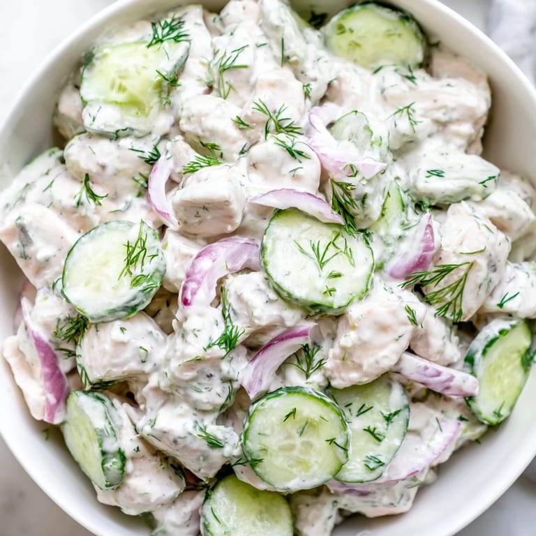 Save to Pinterest Last July my kitchen AC died during a heatwave and I refused to turn on the oven. This cucumber chicken salad saved me. My neighbor actually knocked on the door asking what smelled so fresh, which never happens with anything I make when it's ninety degrees inside.