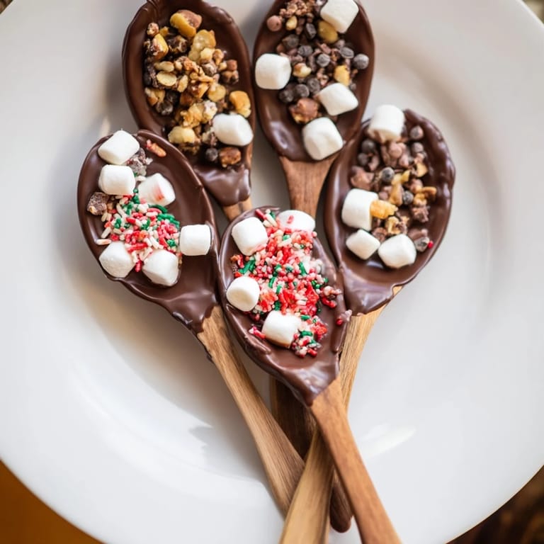 Save to Pinterest A fun and interactive dessert featuring an array of toppings for dipping hot chocolate spoons—perfect for cozy gatherings or festive occasions.