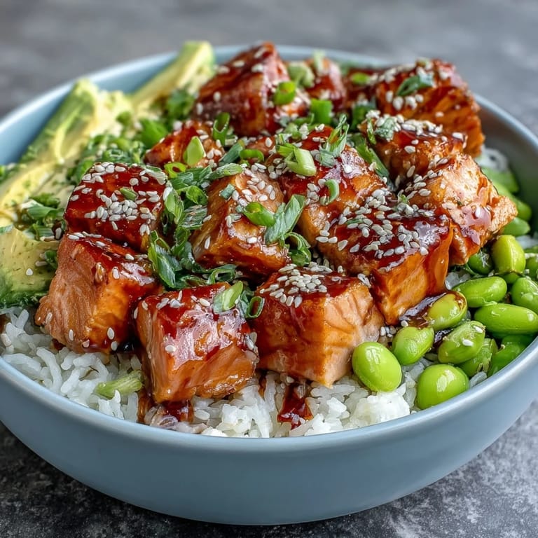 Save to Pinterest My roommate came home one Tuesday evening with a container of sushi rice and announced she'd mastered bowl meals during her lunch breaks. That single comment spiraled into weeks of experimentation in our tiny kitchen, and this salmon rice bowl became the answer to everything we craved: something that looked restaurant-worthy but demanded almost nothing from us on weeknights. The first time I assembled one, I realized how therapeutic it is to arrange these jewel-toned components, each one singing its own flavor while somehow creating perfect harmony together.