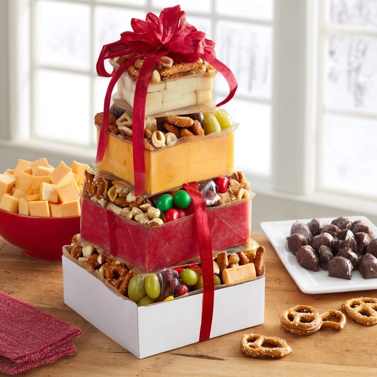 Save to Pinterest Creating the Stacked Christmas Gift Snack Tower brings a festive spirit to any gathering with its inviting layers of savory and sweet delights. This no-cook, easy-to-assemble appetizer not only pleases the palate but delights the eyes, making your holiday celebration both tasty and memorable.