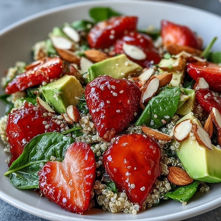 Save to Pinterest Standing at my kitchen counter with the window cracked open, I realized how much I love meals that capture the colors and smells of early summer. The first time I tossed this Strawberry Avocado Quinoa Salad together, the sharp scent of basil mingled with sweet strawberries, making me pause and inhale, grateful for the moment. I remember slicing the strawberries while listening to my favorite playlist, surprised at how cheerful the salad looked with every ingredient. There's something about vibrant food that lifts the mood in the middle of a busy week. Quick, fresh, and satisfyingly creamy, this became my go-to when I craved something both lively and light.
