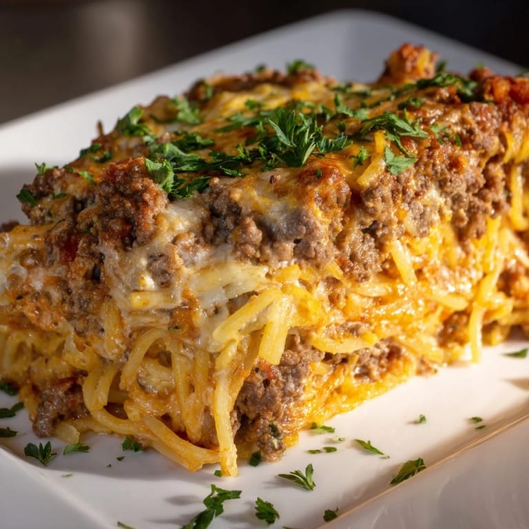 Save to Pinterest My sister called one Wednesday asking if I could bring dinner to her place, something hearty that would feed a crowd without fussing. I remembered this dish from a potluck years ago—spaghetti baked into creamy, bubbly layers of cheese and beef that somehow felt both comforting and indulgent. It clicked. Within an hour, I had it in the oven, and the smell that filled her kitchen was the kind that made everyone forget they were hungry and just stood around waiting.